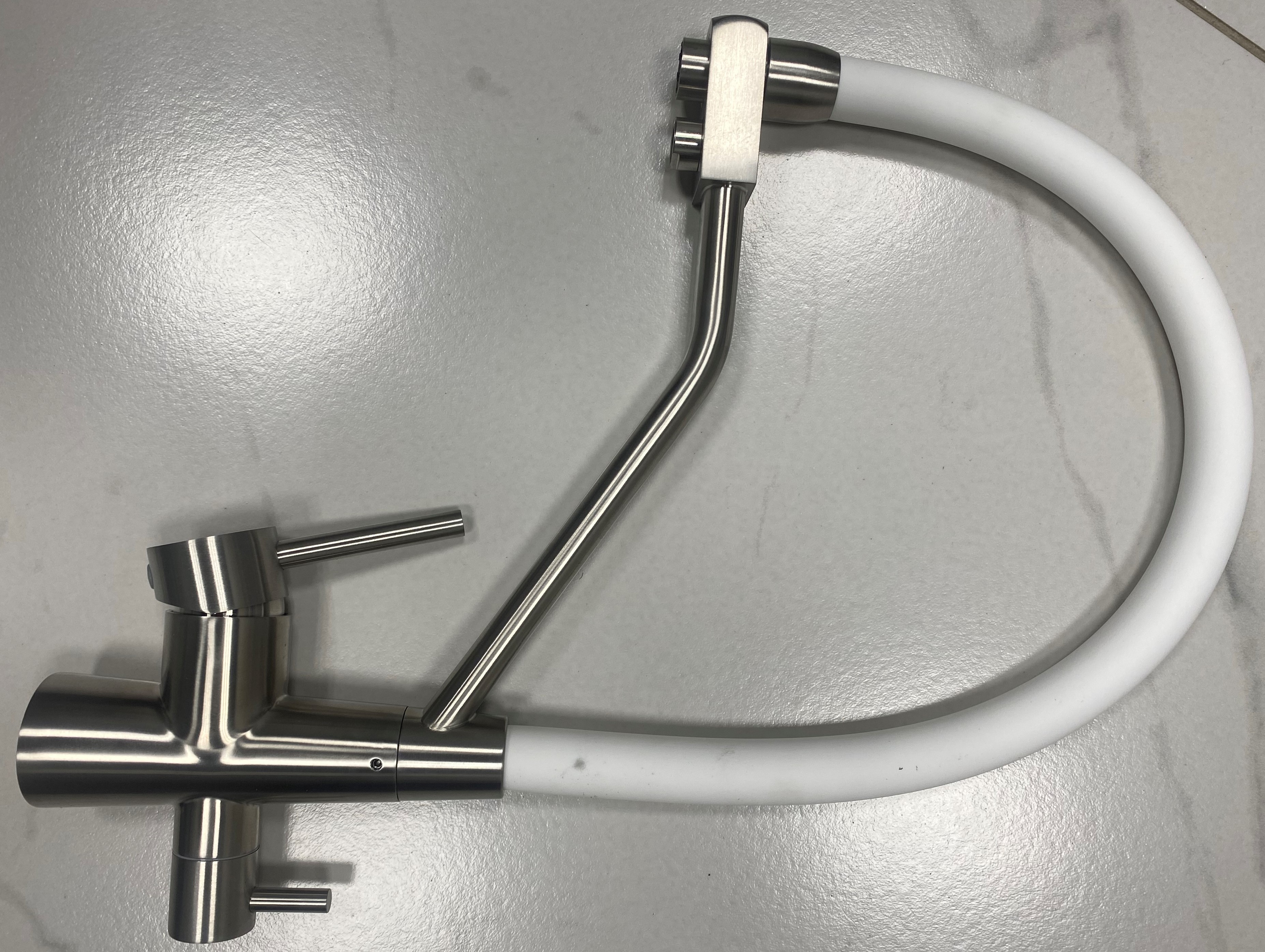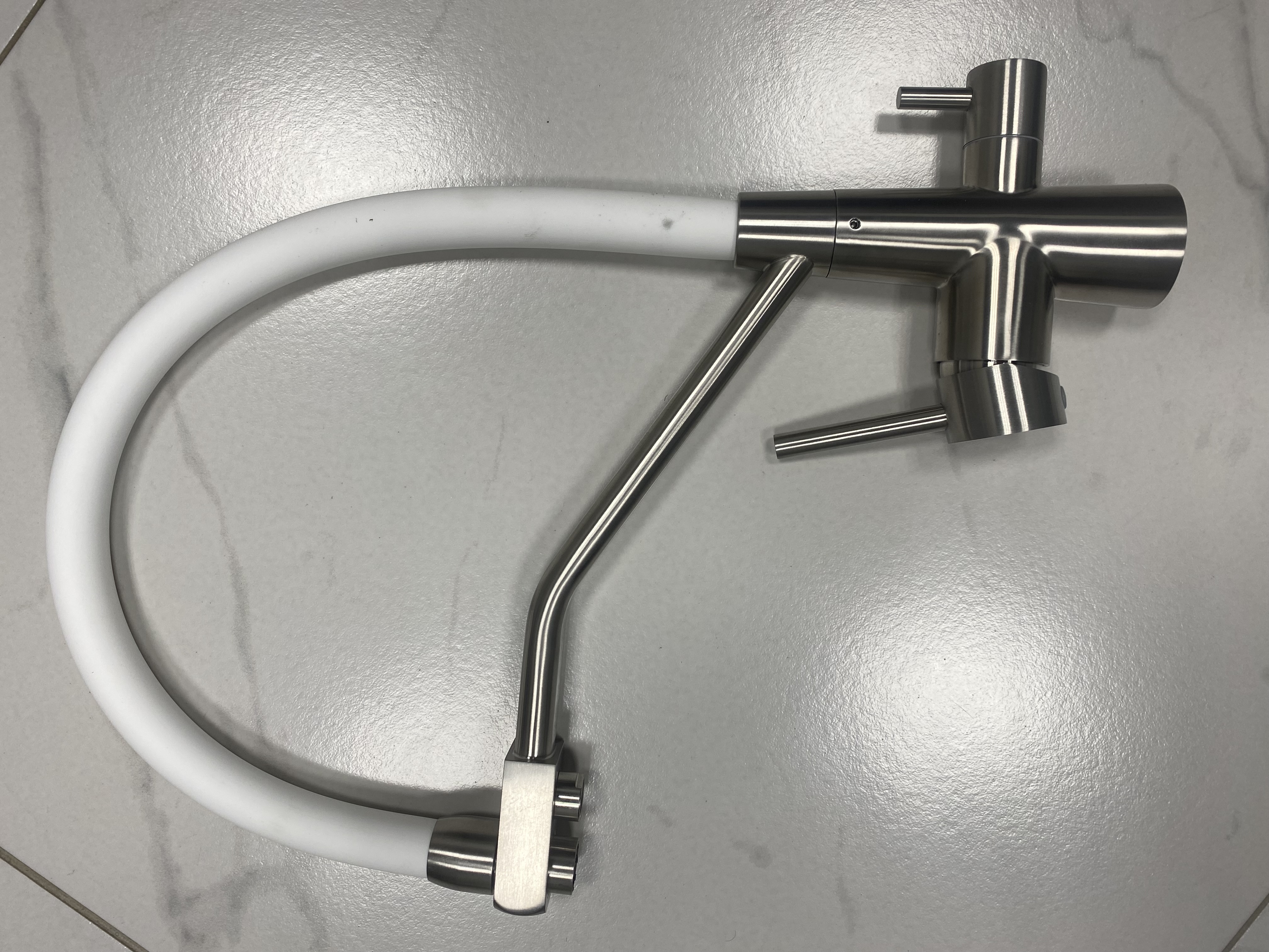 FABIA-Lux смеситель для кухни FL 1 сатин/бел.шланг + фильтр